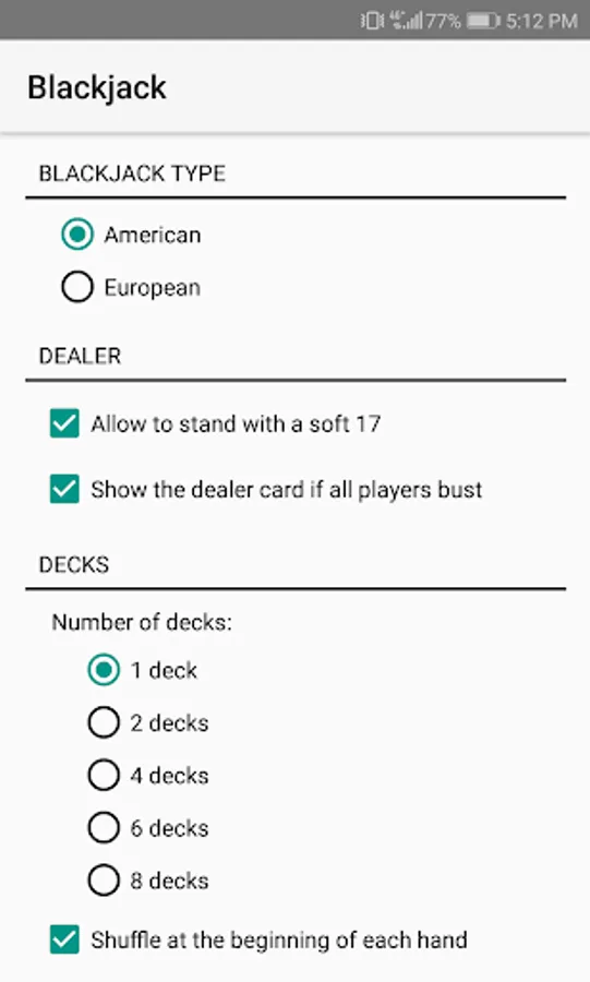 - Play Sevens against several CPU (1 to 4) or only against the dealer