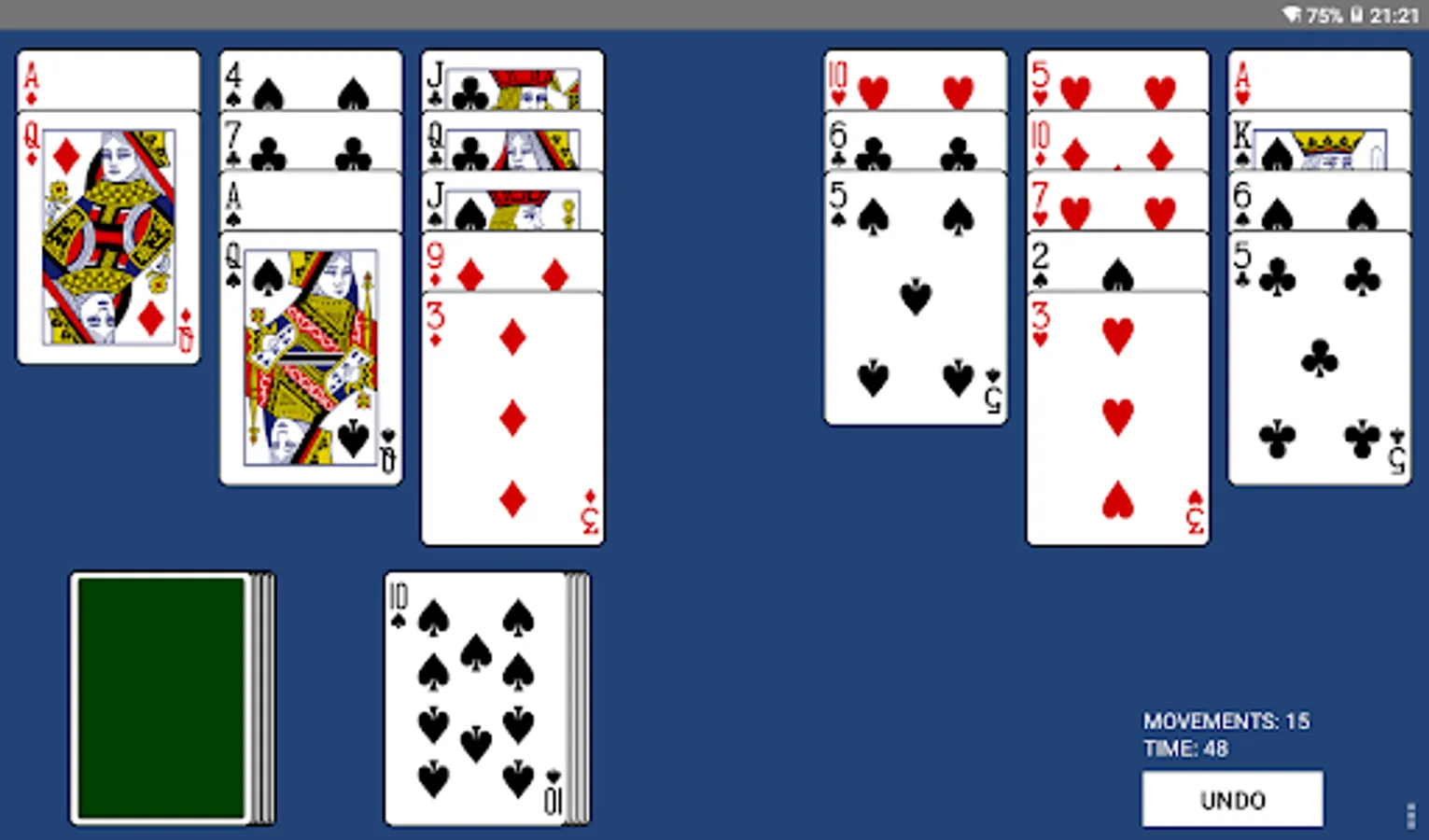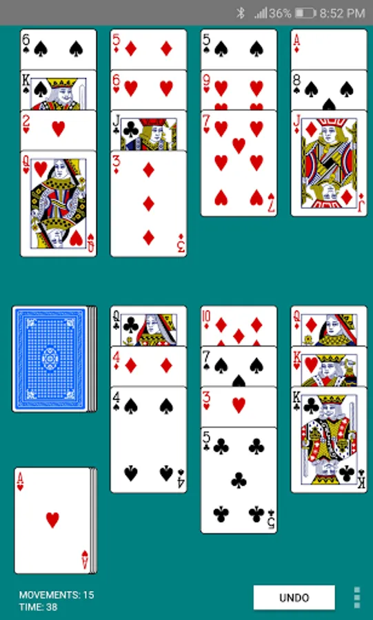 - Cards can be removed if their values total are a rank higher or lower than the waste top card