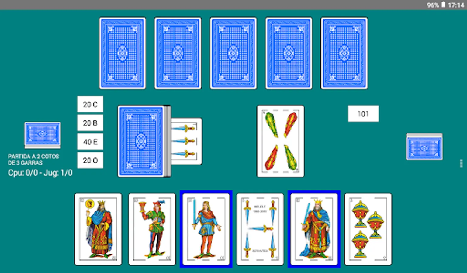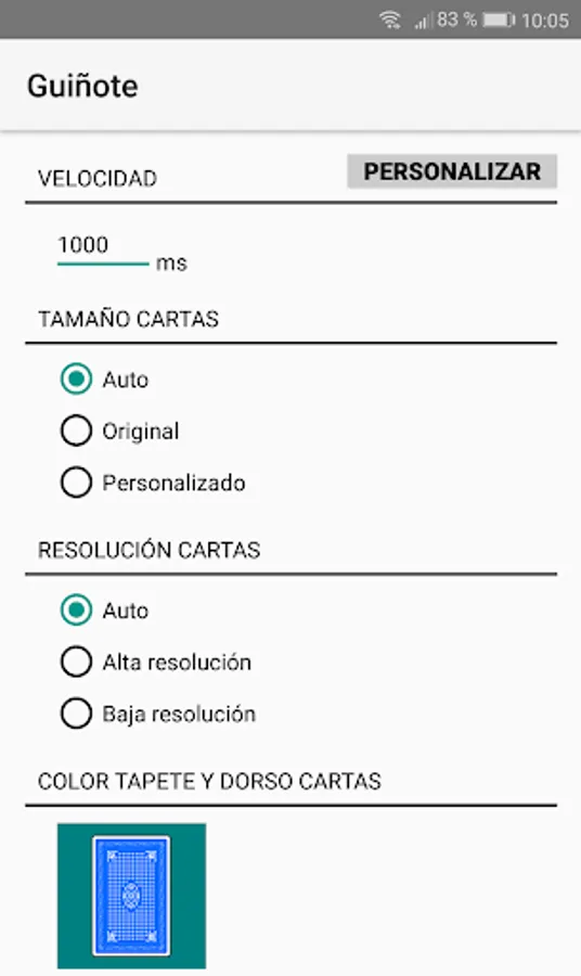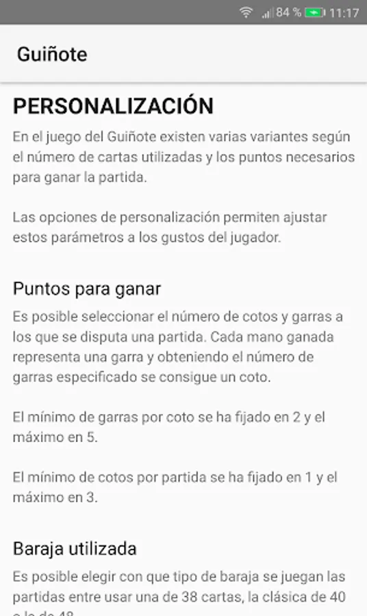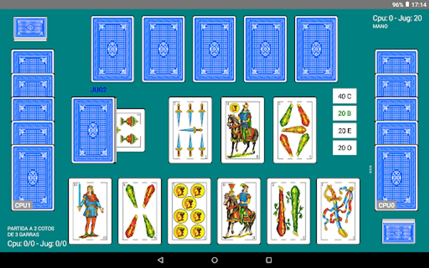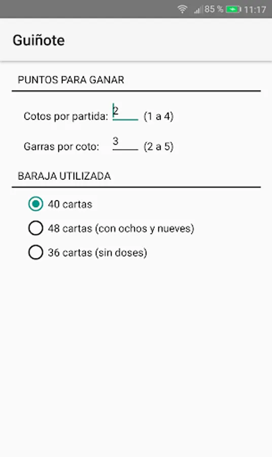 By means of the customization options the player can modify the number of cards in the deck (36, 40 or 48) and the number of preserves and claws to which the game is played