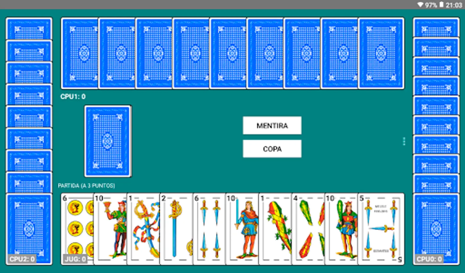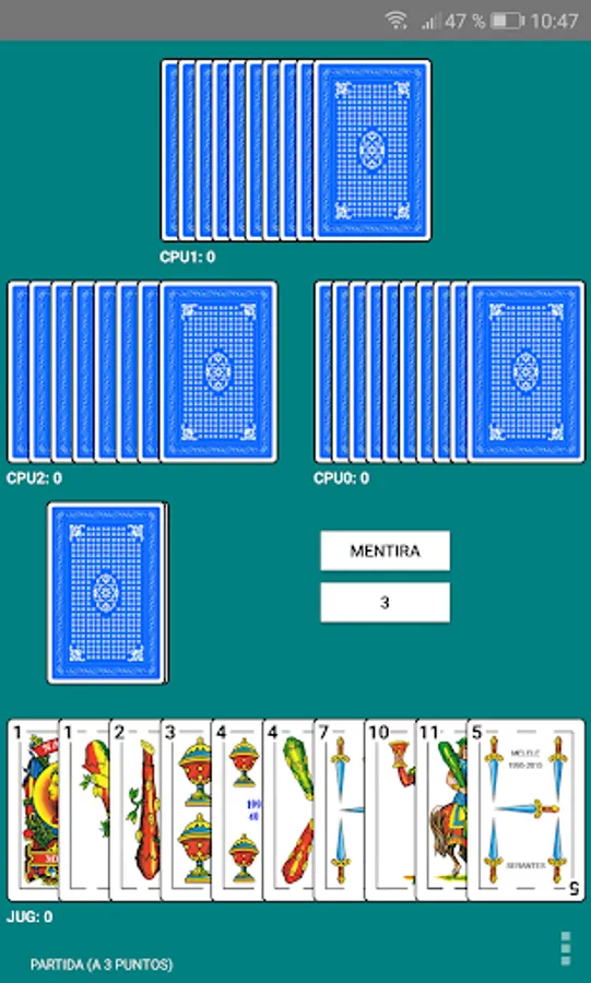 - The game develops in hands in which all the cards are dealt. Players in turn must try to get rid of all their cards by claiming that they are of value or distrusting the previous player's claim (in this case, if the statement was true, the cards on the table are left by the player that I distrust and if not it was the player who lied).
