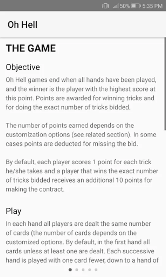 - A game consists of a fixed number of hands, and each hand consists of dealing a variable number of cards. During a hand, each player bids for a number of tricks, then attempts to take exactly that many tricks during the hand.