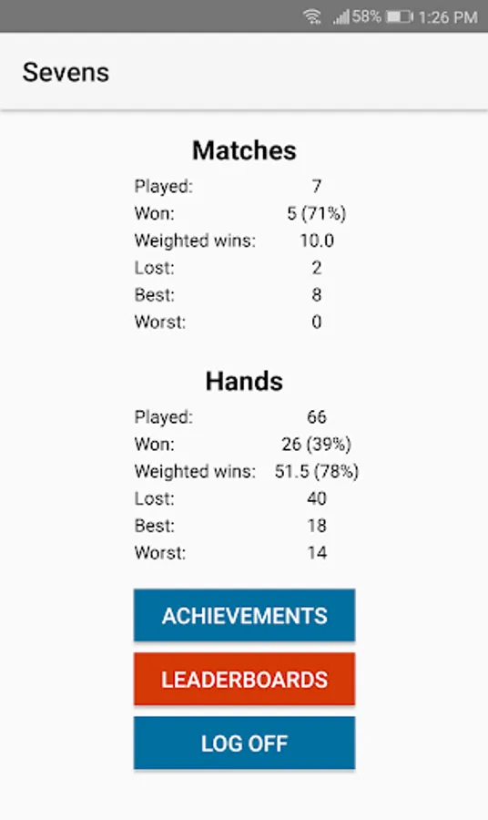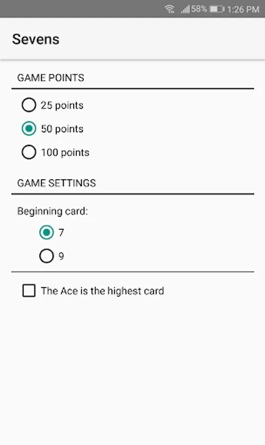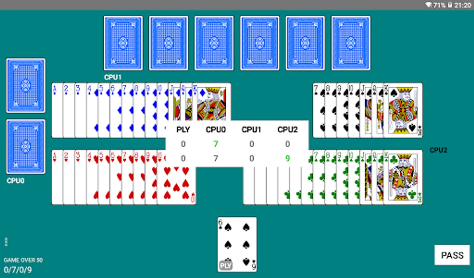 - Play Sevens against several CPU (3 to 5 players)