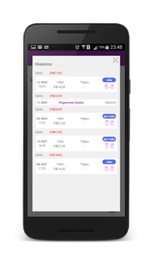 With all this control, it is possible to have a history of service to each client, view each nail and the day was done the payment thereof.