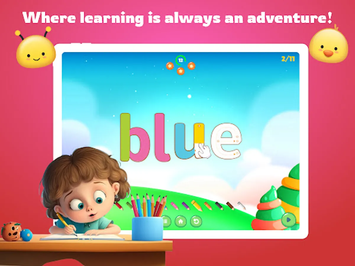 Your child can draw and learn letters and words on fun topics like animals, seasons, and colors.