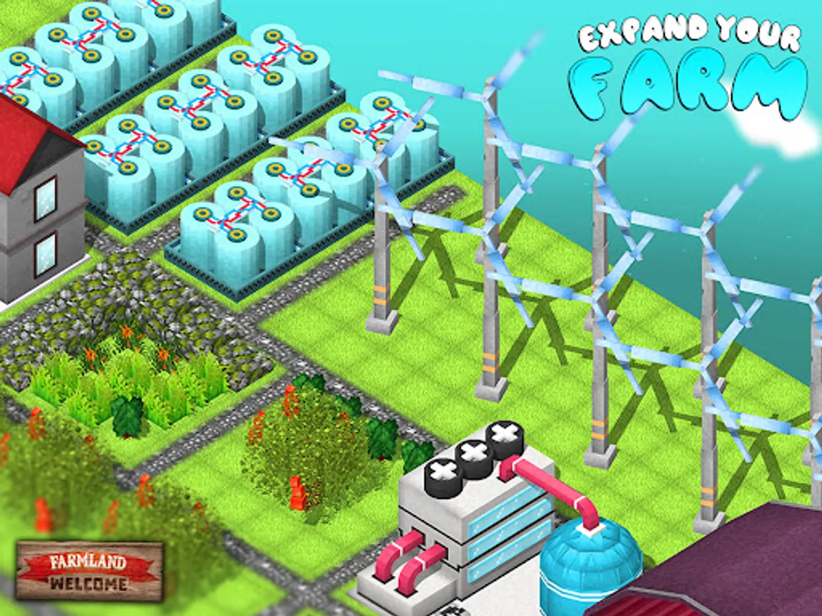 Start producing green energy and build modern factories which would boost your production and development of your farm.