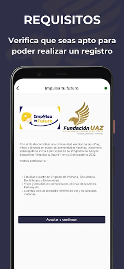 The "Fundación UAZ" application for the Fundación Universidad Autónoma de Zacatecas A.C., has as its general objective to allow students to apply for some economic support based on the calls that the same foundation is offering and in turn allow the foundation to carry out the process of reviewing and assigning the different supports and giving the corresponding follow-up.