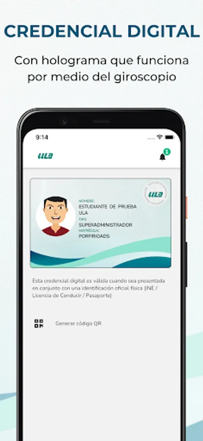 Welcome to ULA Pass, the official application of the Latin American University, which will allow students, teachers and administrators of the ULA to identify themselves as such anywhere, in addition to having the following features: