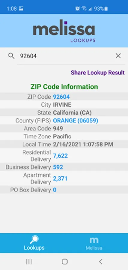 - Search a ZIP Code and additional information such as number of business and residential deliveries.
