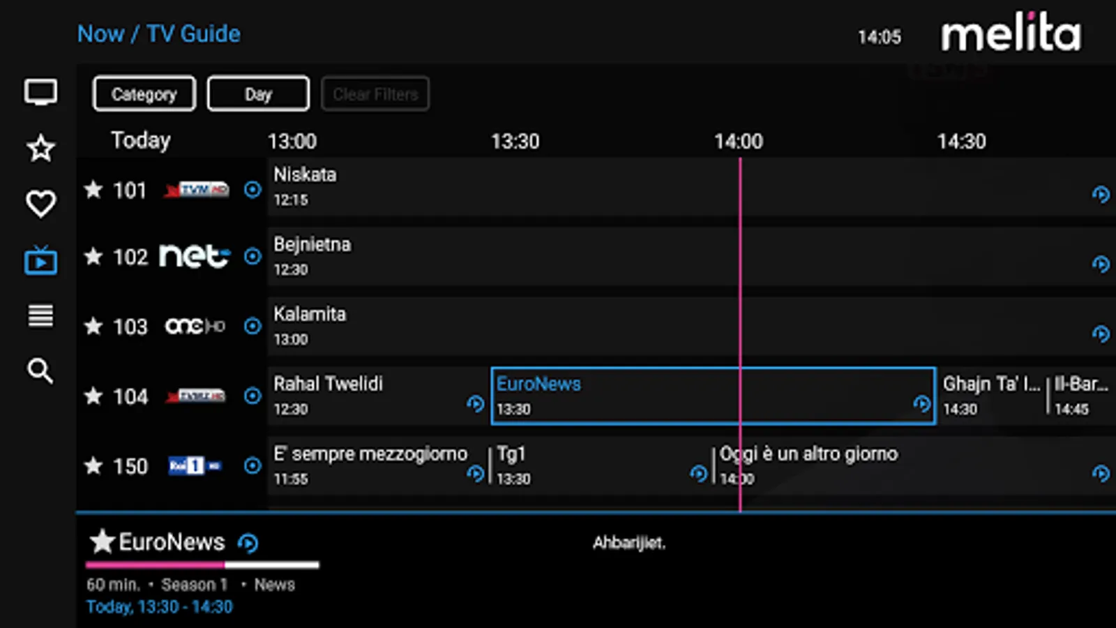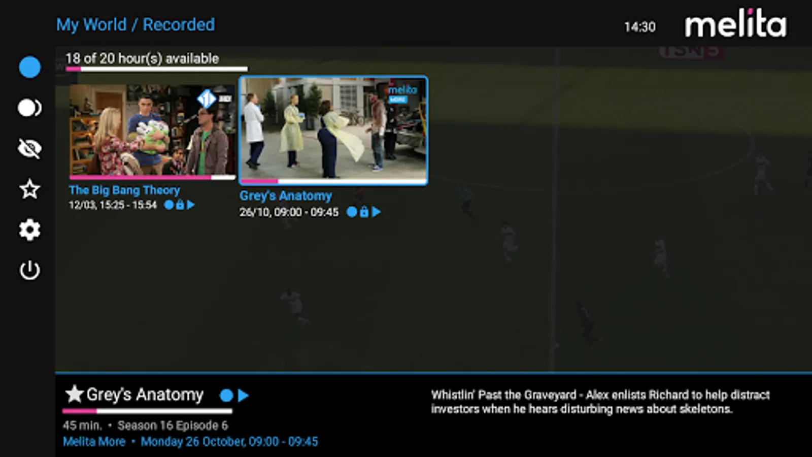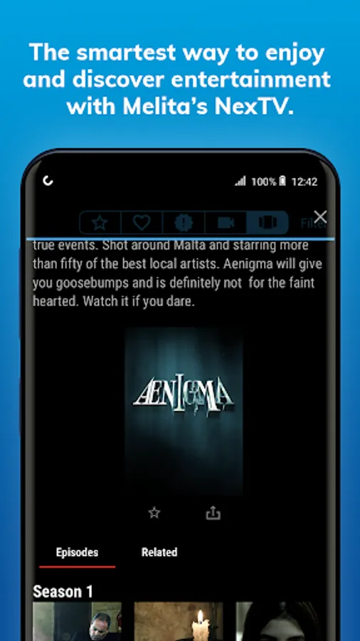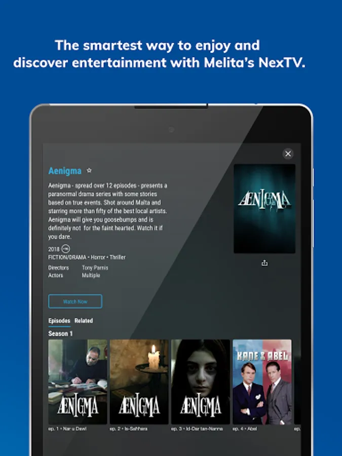 Melita NexTV is the smartest way to enjoy and discover great entertainment. As a Melita NexTV customer, you can watch different programmes on up to four devices at the same time. You can even press pause and move to a different hotspot to continue viewing. The app lets you search using the NexTV smart filters, browse recommendations, record favourite show, set reminders, catch up on programmes from the last seven days, rent a film, watch two programmes simultaneously in split screen mode – everything that you can do from your NexTV remote, you can do with the NexTV app.