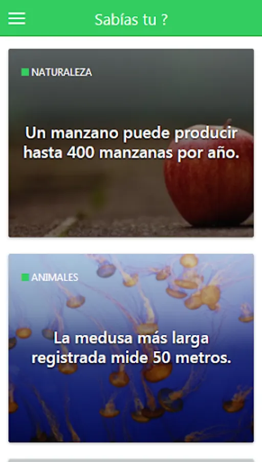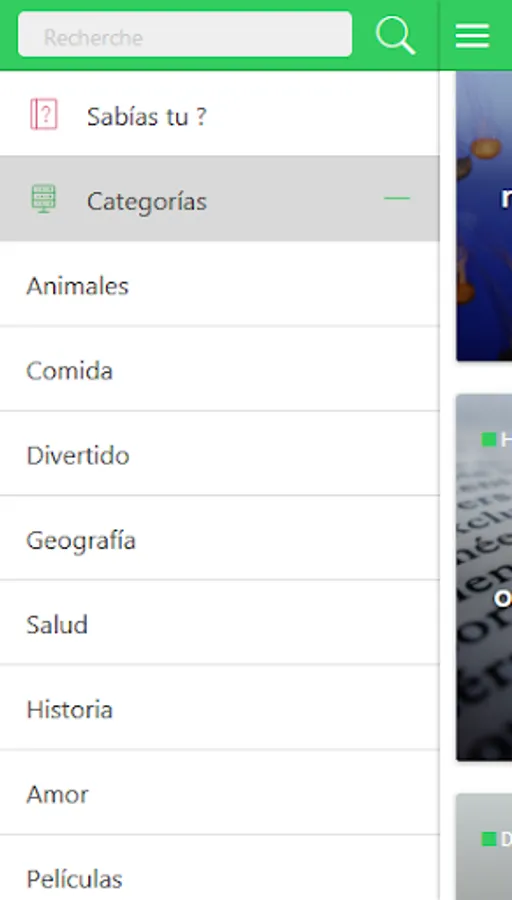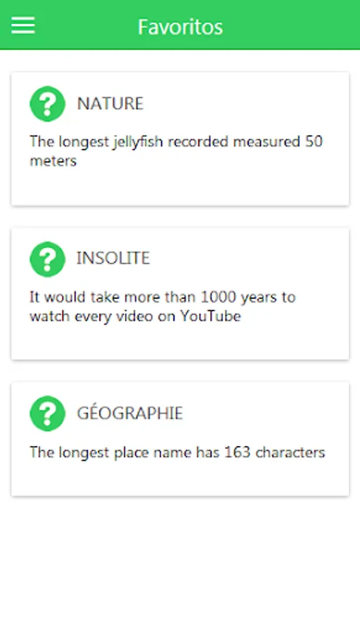 Unusual information is classified by category (Food, Love, Science, Sport, etc.), verified and enriched regularly.