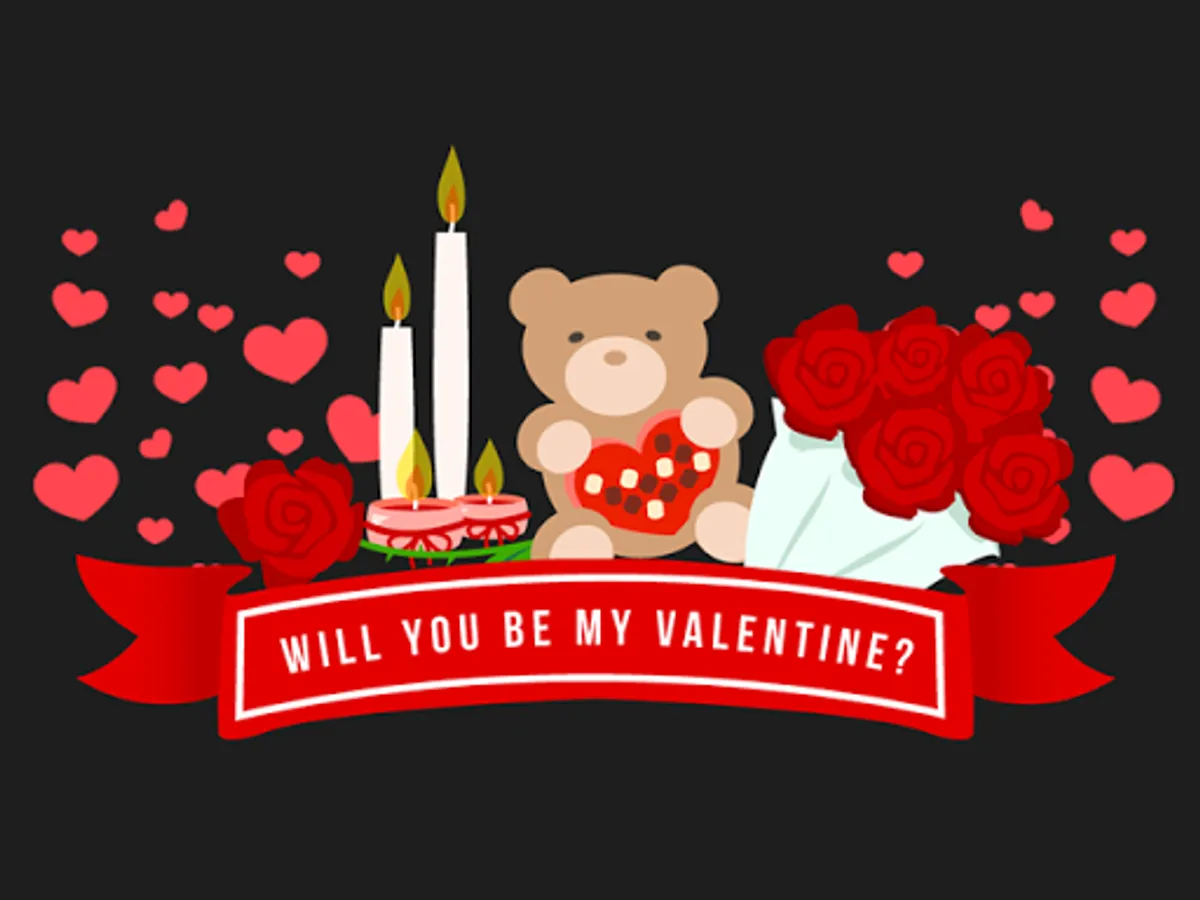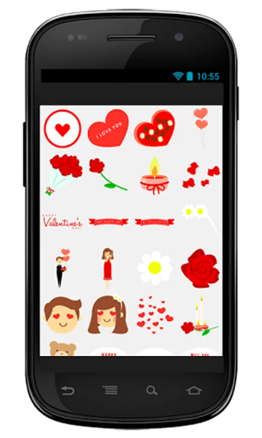Features Fun and Cute Graphic Stickers : Hearts , 'Will You Be My Valentine?' , 'I love you' , 'Happy Valentines Day' , Teddy Bears, Roses , Flower Bouquet , Romantic Candles , Love Balloons , Lipstick Mark etc..