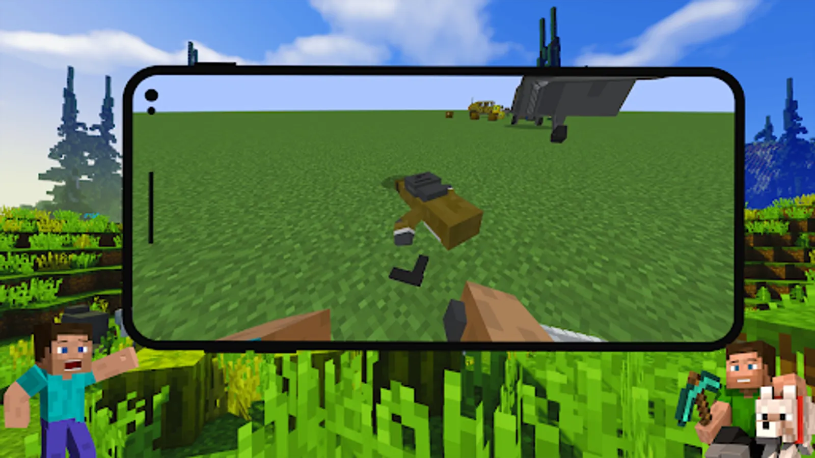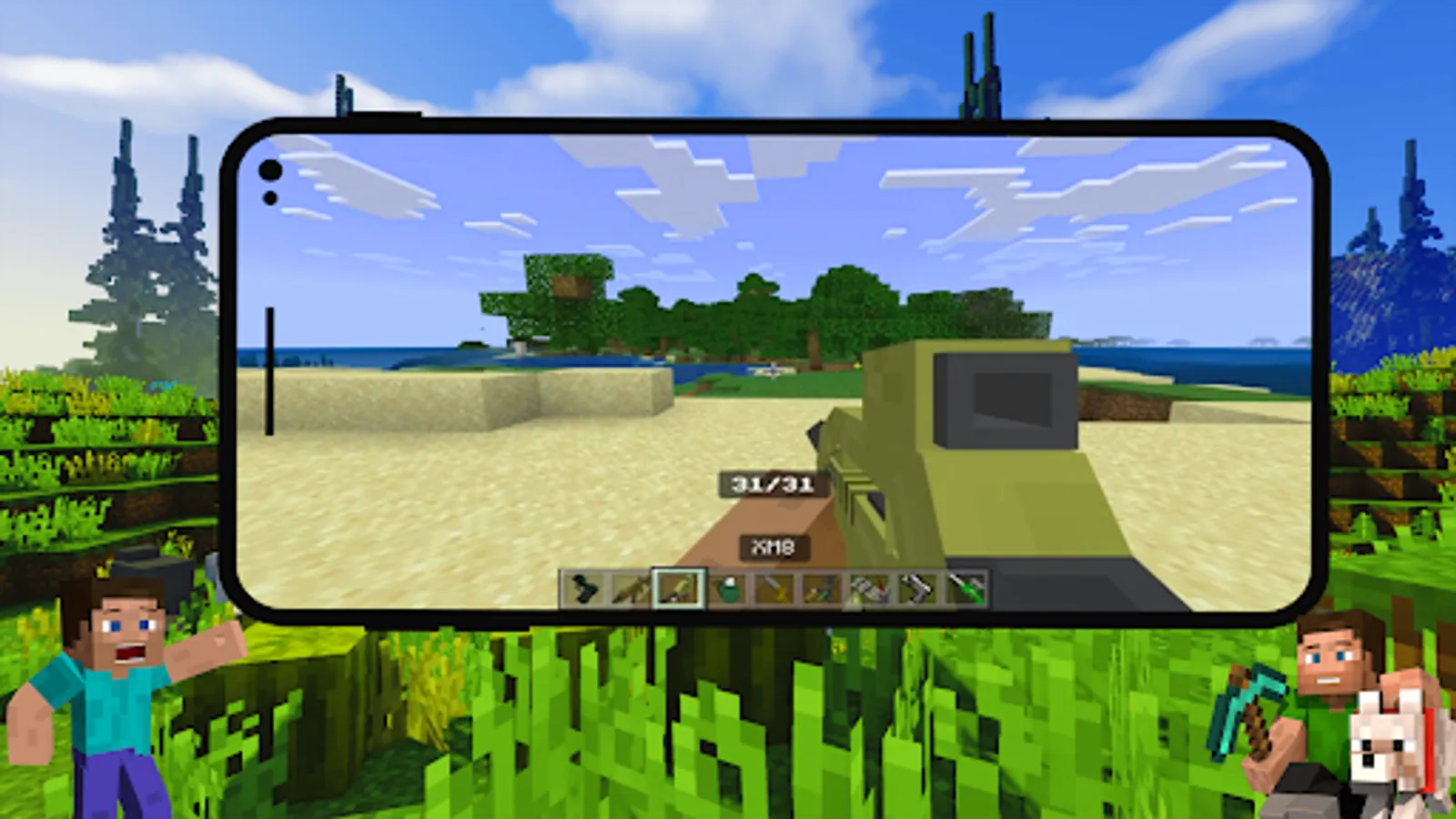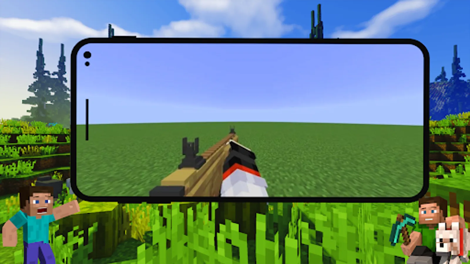 If you want to see high-quality weapons in Minecraft PE worlds, then you should definitely install Guns Mods for MCPE. You will also have access to not only mines, cool rocket launchers, sniper rifles, shotguns, but also rare mobs.