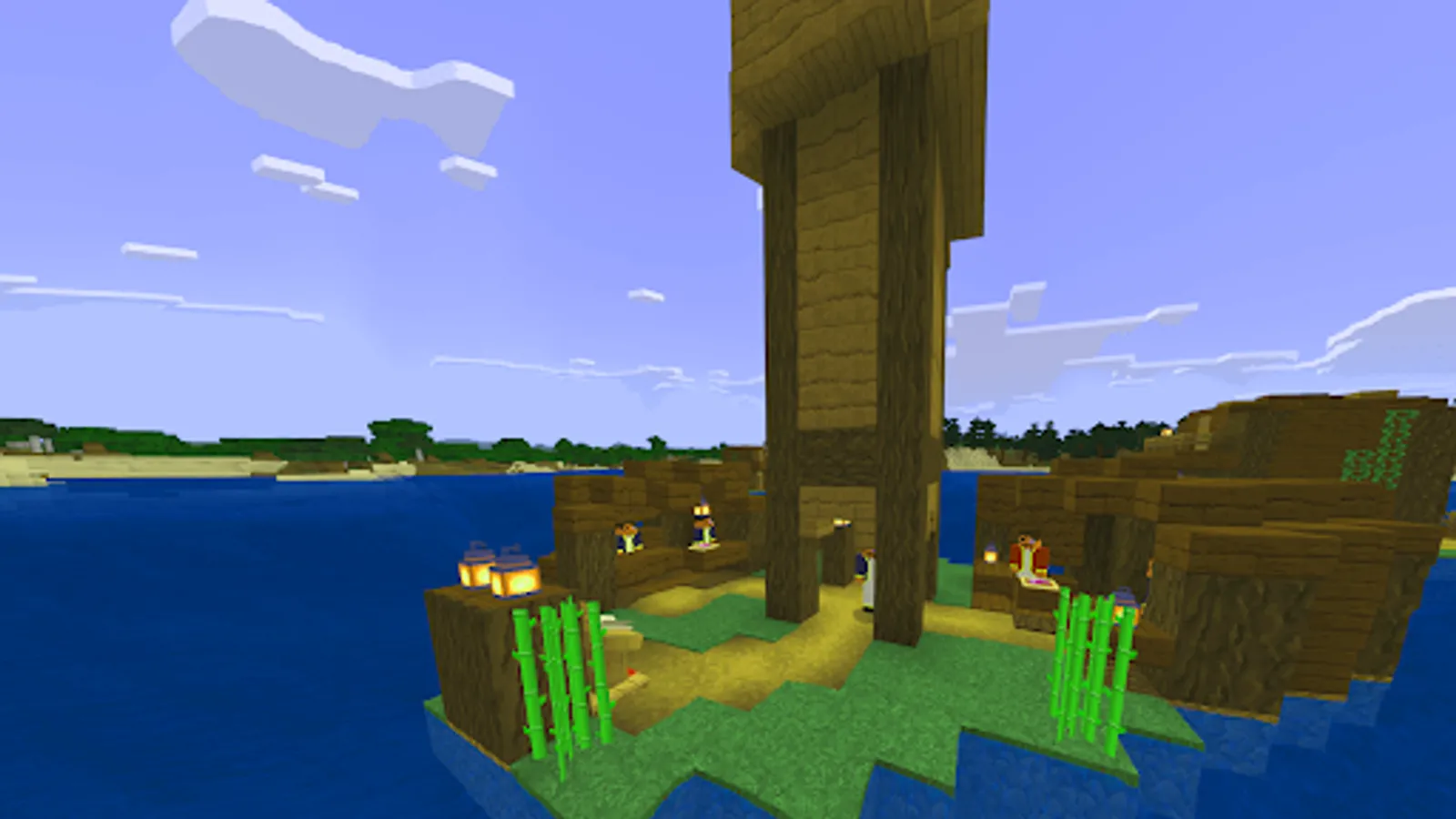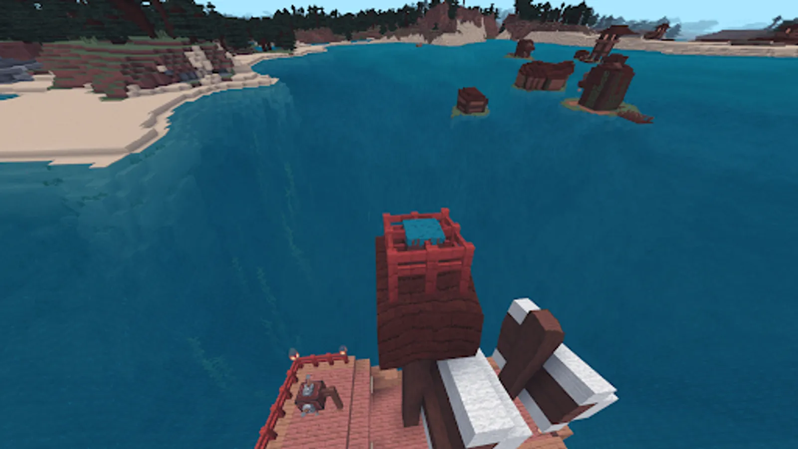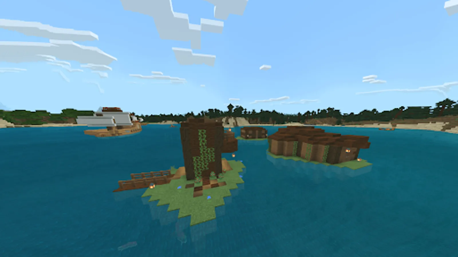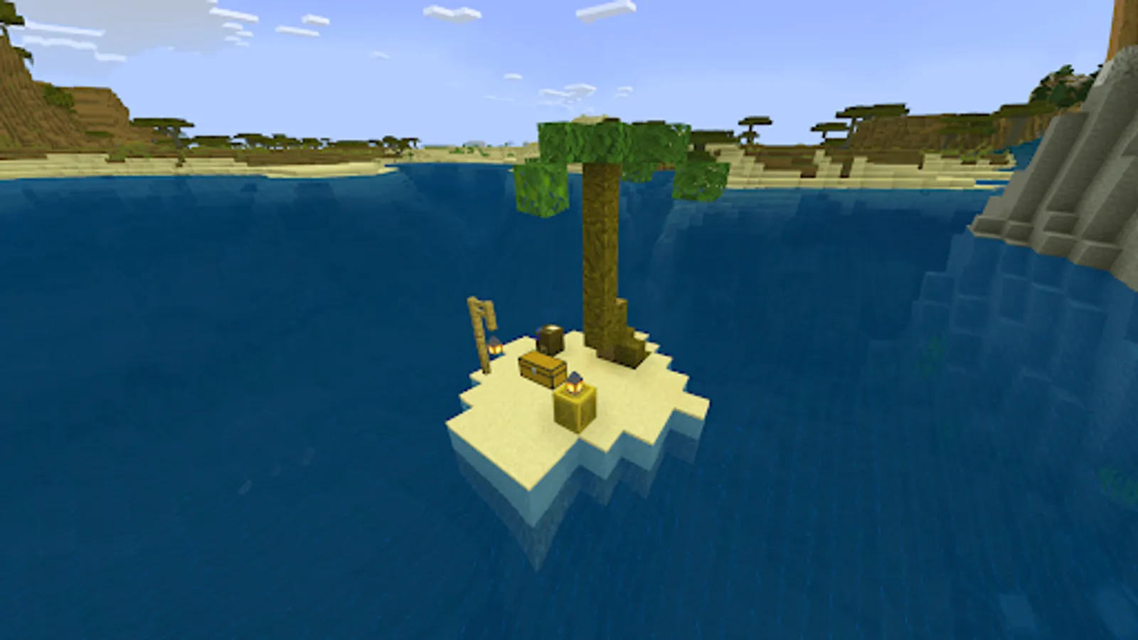 If you want more mysteries and adventures on the islands, then you can use Minecraft PE mods that will add special treasure blocks to your world that can be found in different biomes. Each block contains a random amount of money or items that you can use to upgrade your inventory or build your house. But be careful because some blocks may be fakes or explode when opened. With mods for MCPE you can use redstone to create different effects when you activate treasure blocks.