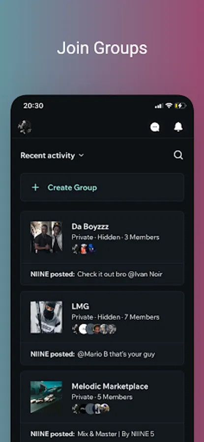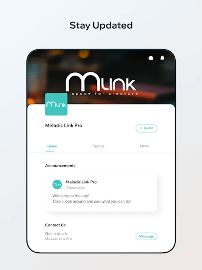 - Melodic Groups: Unite your community of fans with personalised public or private groups, fostering genuine connections and sharing exclusive content.