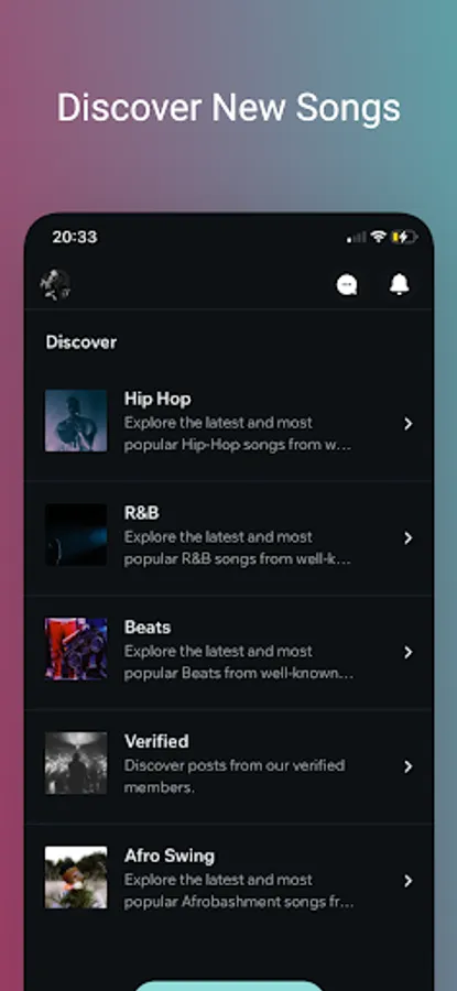 - Genre Filtering: Tailor your feed by choosing preferred music genres, ensuring effortless music discovery. Labels and A&R professionals find their next big talent with ease.
