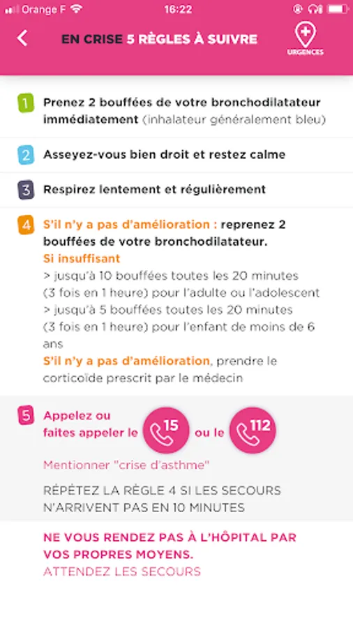 Never commonplace, an asthma attack can be a life-threatening emergency. When the asthma attack does not go with the usual treatments, we do not always remember what to do. To manage the situation, this application remembers the action and the 5 rules to follow.