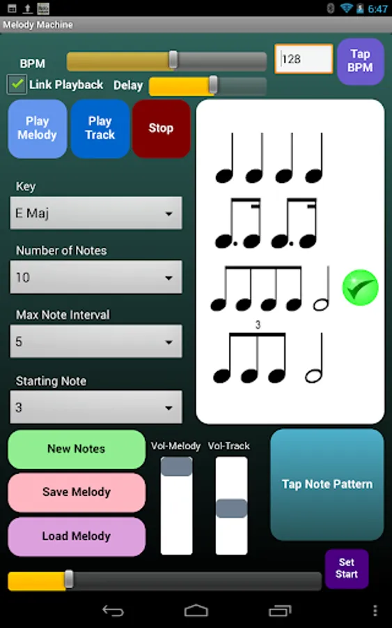 The tempo can be adjusted on the fly, and note syncopation patterns can be tapped out and applied to the generated melody. This is a great tool for serious composers and songwriters.