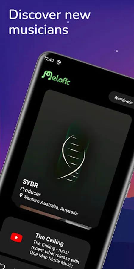 With Melofic, it's easy to collaborate with musicians from around the world. Use our search filter in fields like Genre/Location/Role/Instrument, etc., to find the perfect collaborator, or just discover and browse through our growing database of incredible talent! Whether you're searching for a new artist or a new sound, we have everything you need right at your fingertips. You can also easily connect with other musicians just by swiping right!