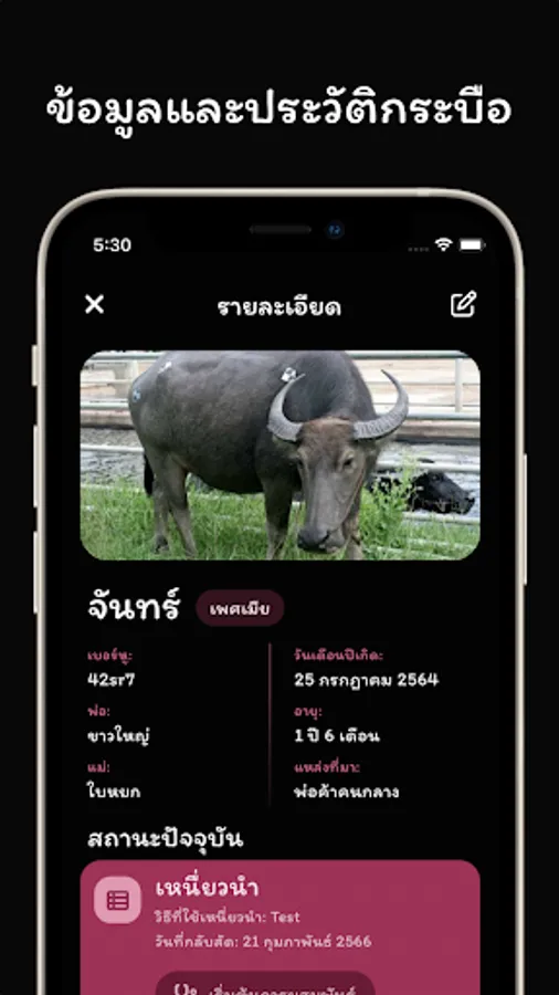 “Smart Buff Manager” is an application developed to increase the efficiency of farm management for buffalo farmers in accordance with technological advancements. This application can be used to record animal identification information such as name, gender, date of birth, father's ID or name Mother's ID or name, synchronization, artificial insemination, farm management information such as vaccination, deworming, disease treatment information, and management notifications. For the convenience of farmers, users can apply for membership using their phone number instead of their email address. Because most farmers do not have email addresses.