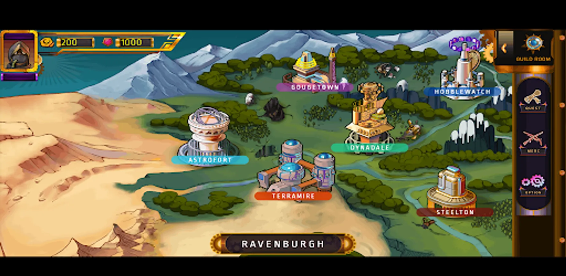 Ravenburgh is a city ruined by attacking rogues and stealing from travelers. Choose your mercenaries to help you along the road. Unlock cities to connect and make contracts with various mercenaries from the guild.