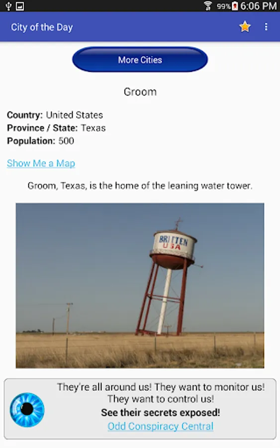 Are you stuck in the airport terminal waiting for your flight? Looking for a distraction? Tokyo, population 37 million. Oatman, population 128. The wealth of Abu Dhabi. The poverty of Mbandaka. Take a quick trip around the world with "City of the Day".