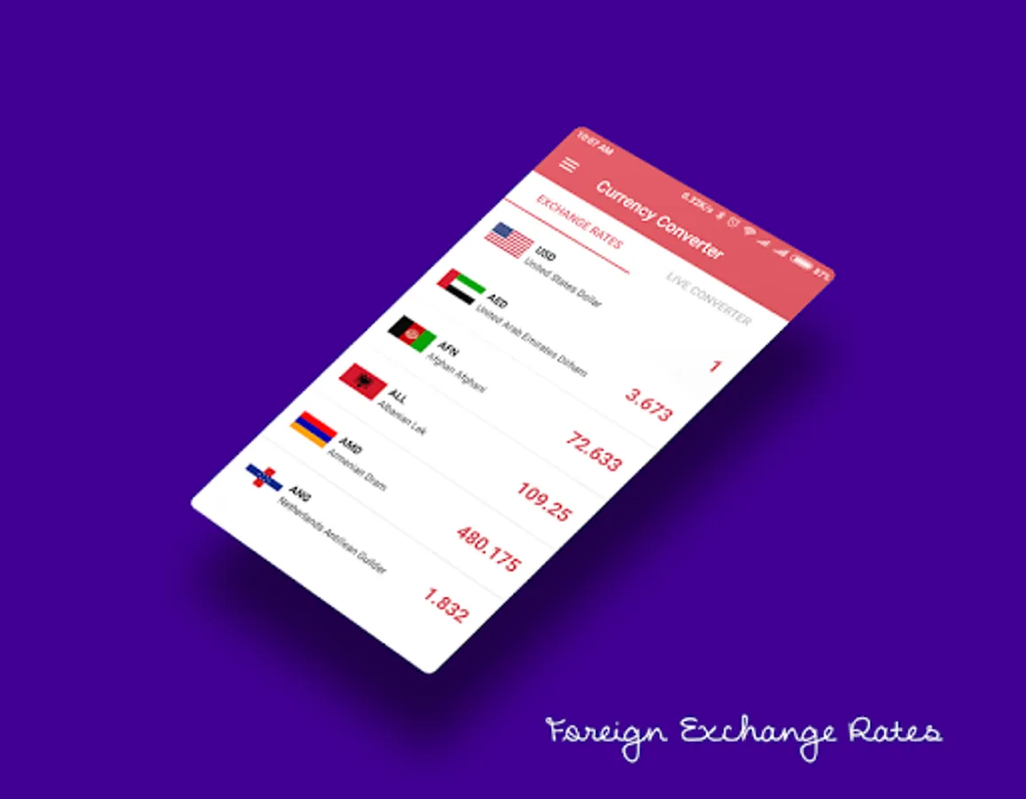 Foreign Exchange Rates app will not only provide live currency rate, it will also help you to convert your country's currency to other countries with just one button press.