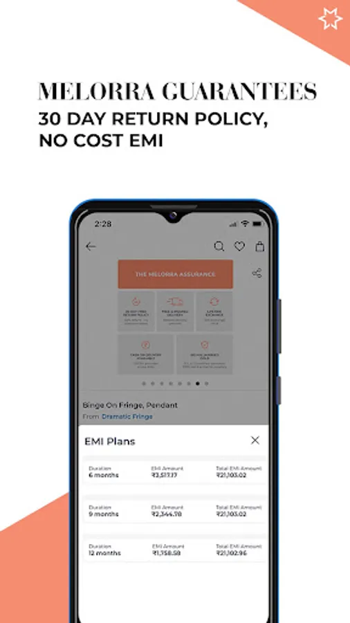 • Buy your jewellery from the comfort of your home. Get the best online jewellery shopping experience with the Virtual Try-on feature on the all-new Melorra Jewellery Shopping App that offers free shipping, a 30-day hassle-free returns policy, lifetime exchange and a convenient cash-on-delivery (COD) option.