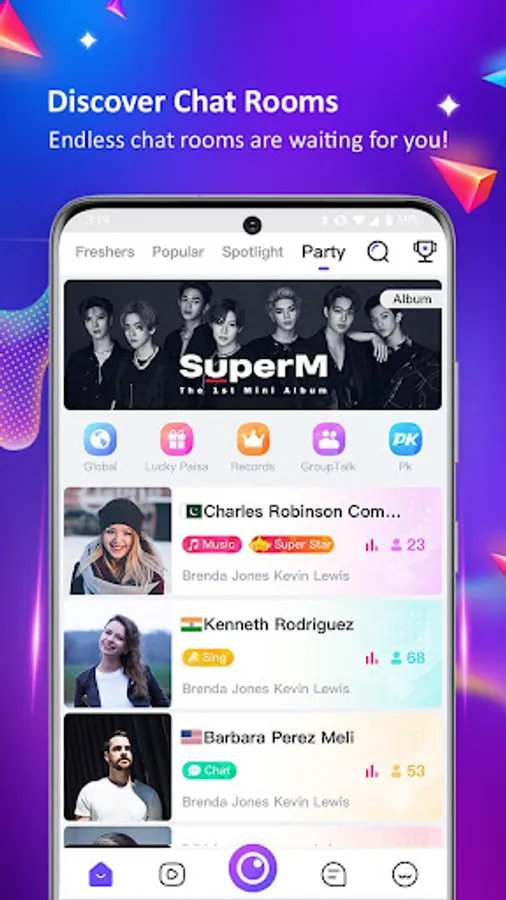 SK Live allows you to live stream and publish your special moments, funny photos or short videos and have group live chat with everybody.