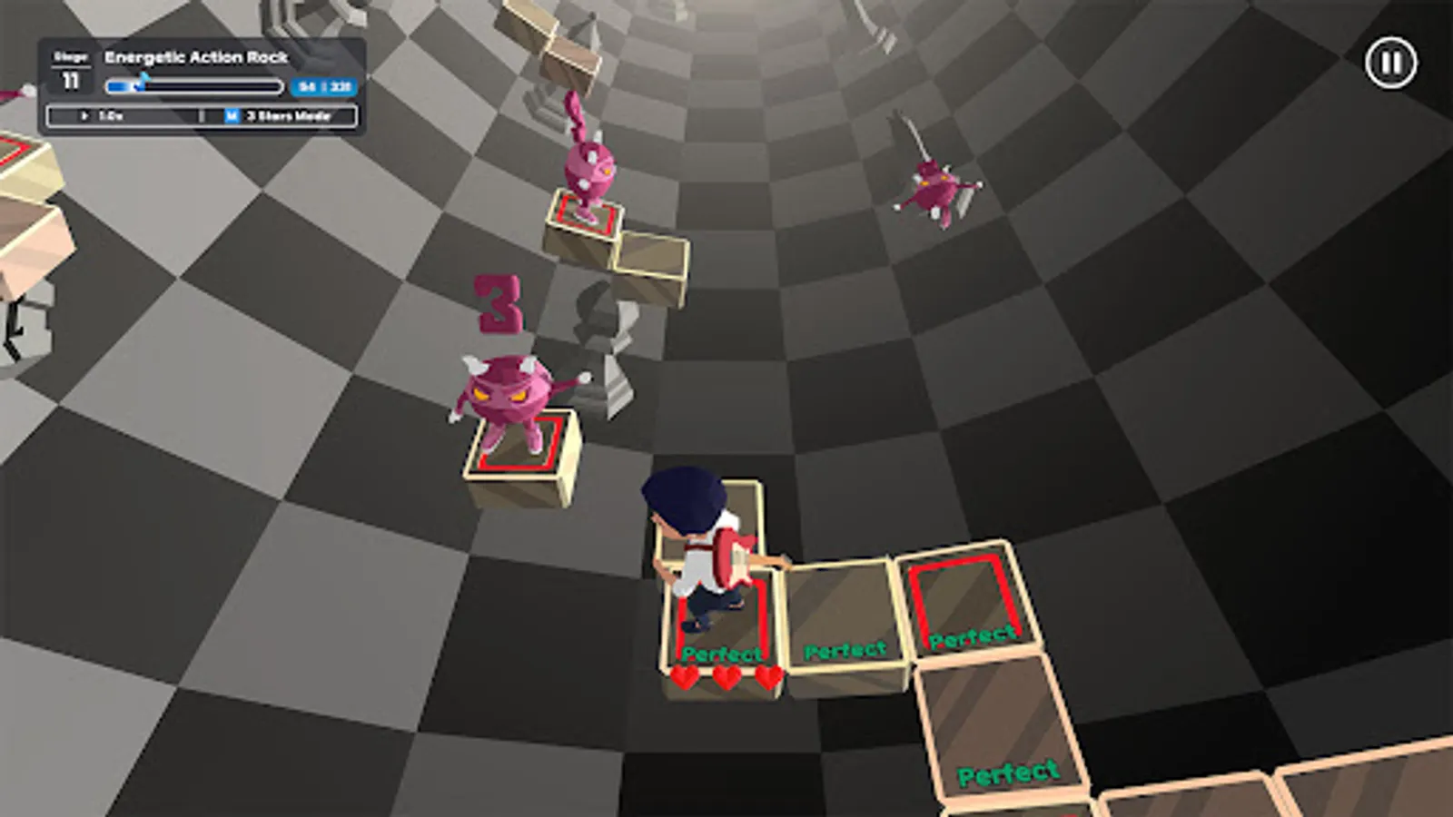Rhythm Stones consists of 56 stages (including 5 tutorials), and each stage consists of a different song in various genres such as rock, funk, jazz, EDM, acoustic, etc.