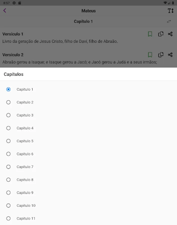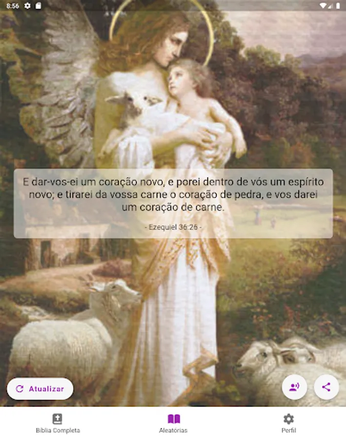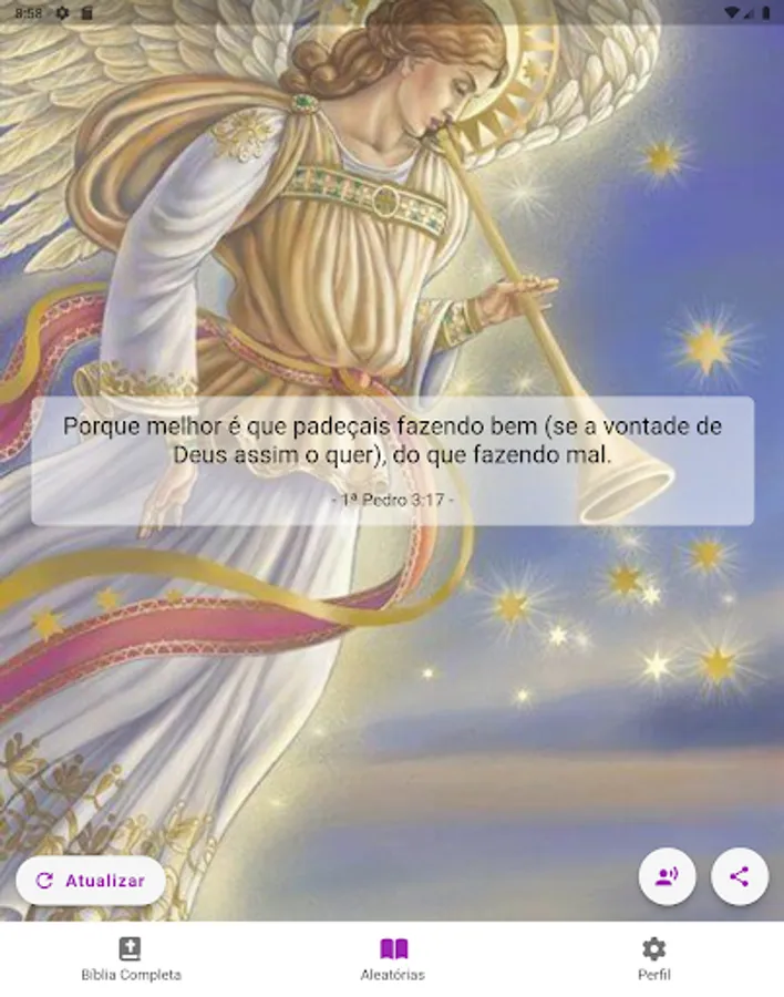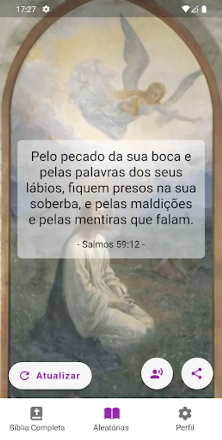 Verse of the day and random verses with images in the background and it is also possible to share and listen to them.