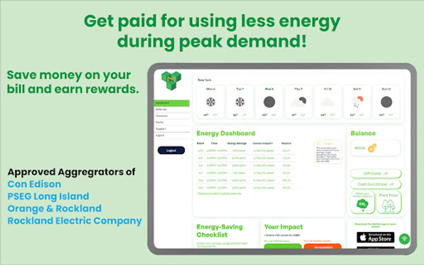 Meltek is a free service that rewards you for using less electricity during certain hours when energy is in high demand, and the power grid is under strain. Use your energy savings for gift card rewards, donating to charities, planting trees, or buying carbon offsets.