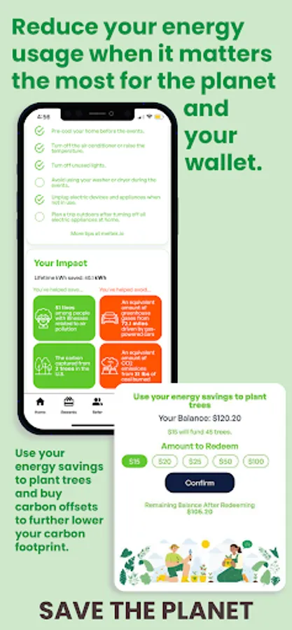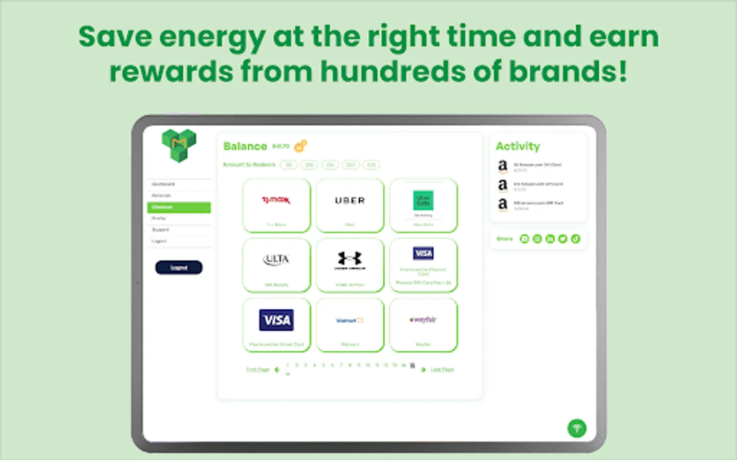 Get paid by Meltek a few days* or weeks after each event and use the rewards to redeem gift cards, donate to charity, plant trees, or buy carbon credits! Also, you can get a referral bonus anytime you refer friends, family members, or neighbors to join in on saving energy!