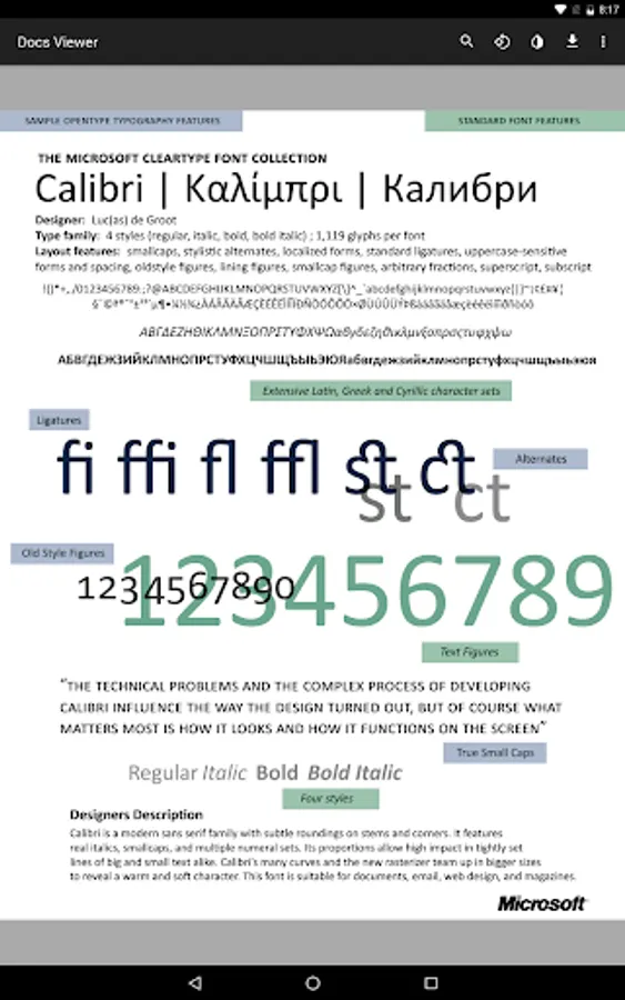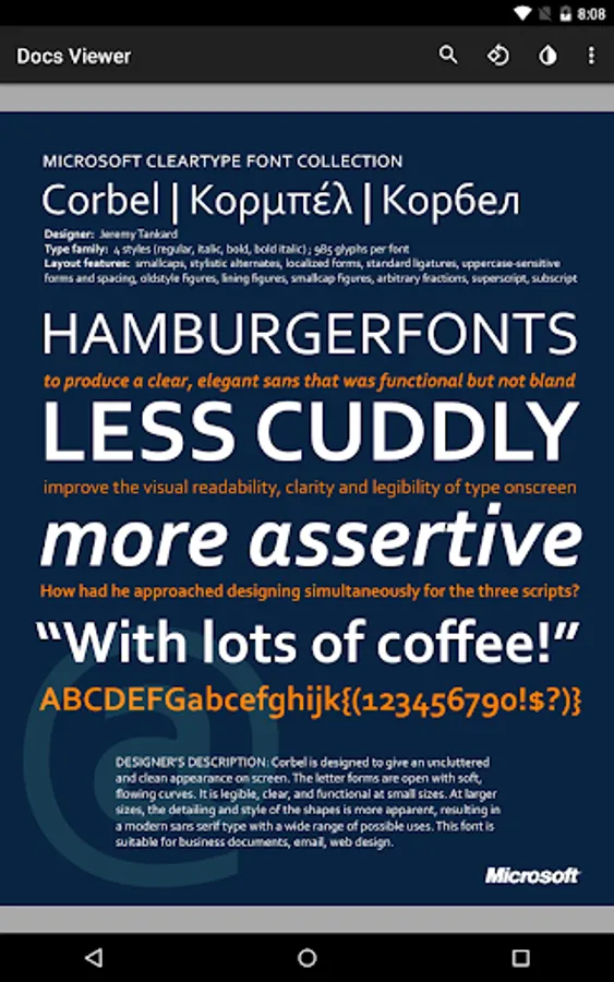 Docs Viewer allows you to quickly view documents on Android, including PDFs and Microsoft Office Files. An internet connection is required.
