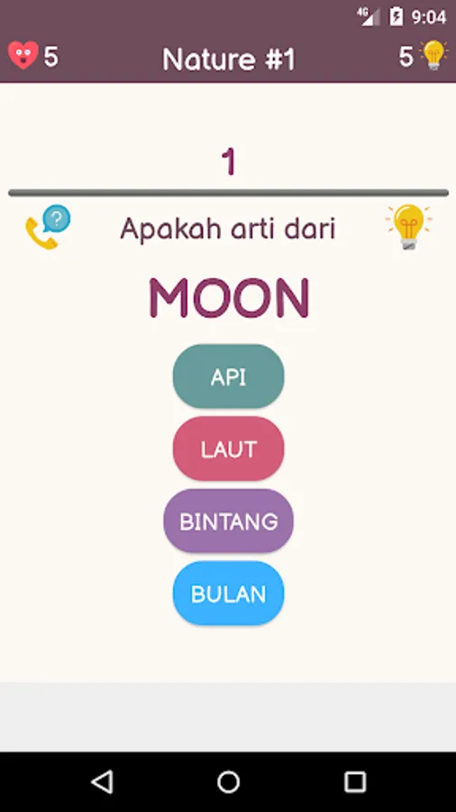 This game has several theme questions such as Animal, Plants, Nature, House, and so on. Each theme has 20 levels. Can you complete all of these levels?