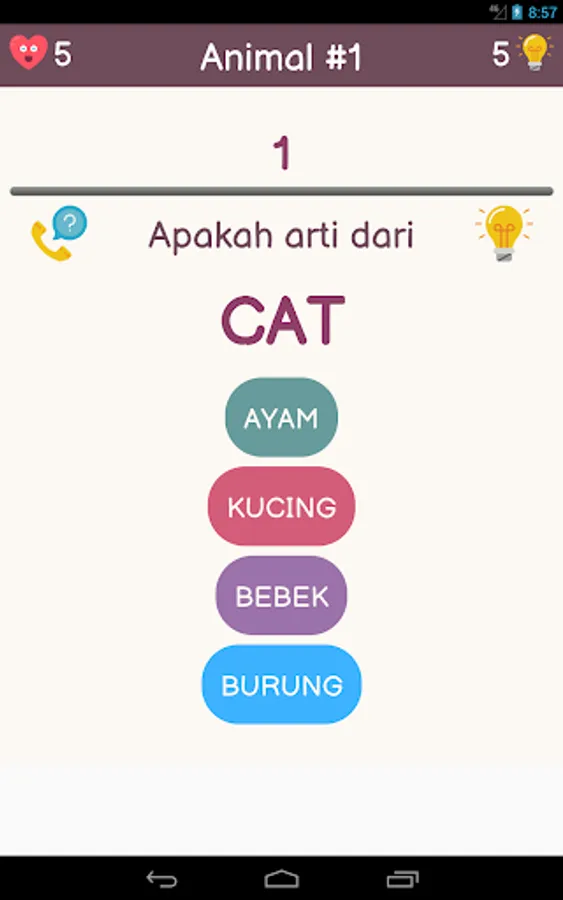 English Quiz- Cabbage is a game that can hone your English knowledge. In this game you can play a quiz with multiple choices. Choose the correct answer according to the word in question.