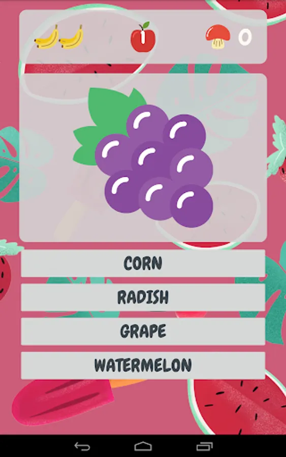 In this game, you have to guess what fruit / vegetable is in the picture. You have 4 choices, choose the correct answer ! :D
