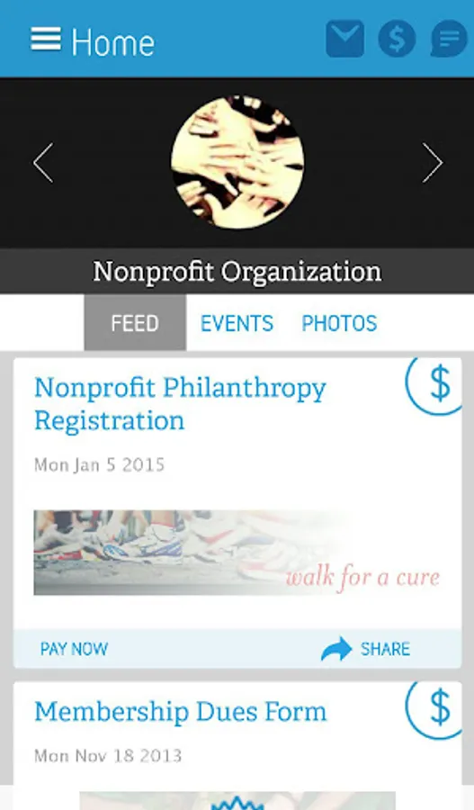 -View group feed to see recent activity including payment items, communication, and forms