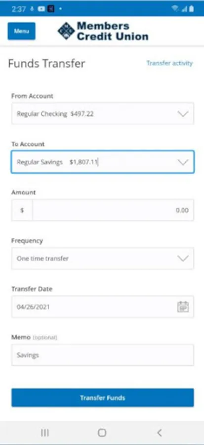 - Transfer money MCU Mobile is secure, and your financial information is protected from unauthorized users.