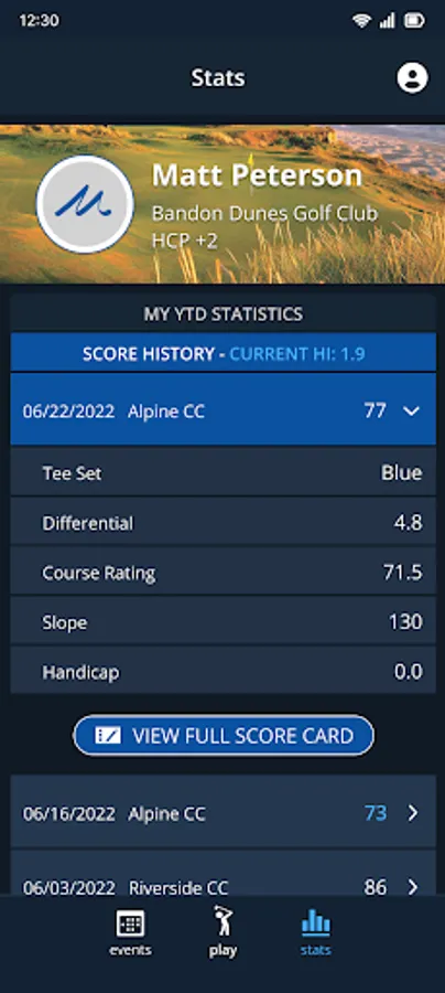 Store and access to key statistical categories like Putts per round/Fairways hit/scrambling and more