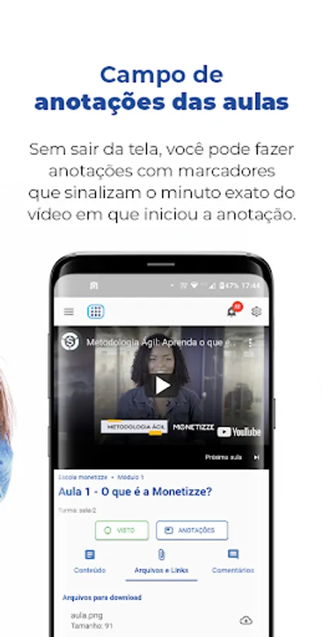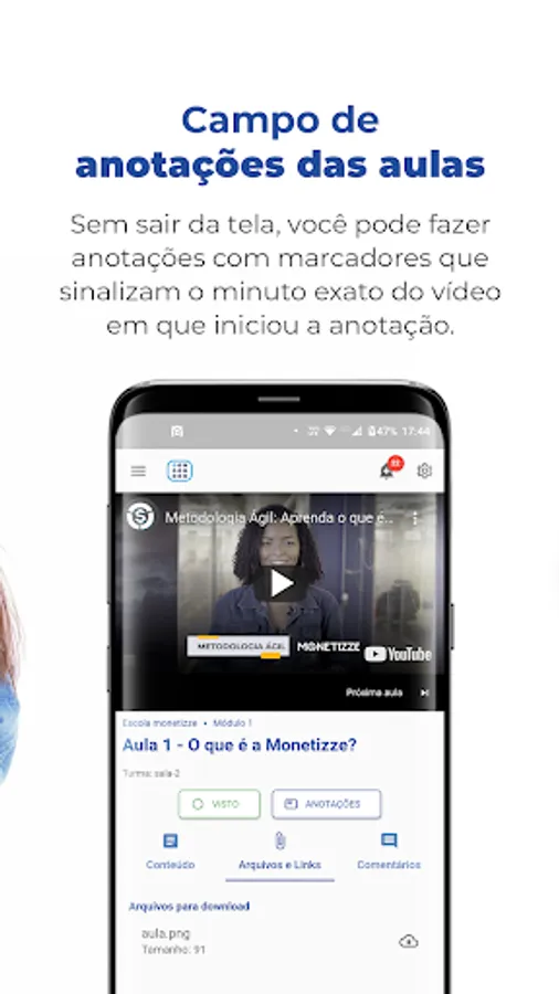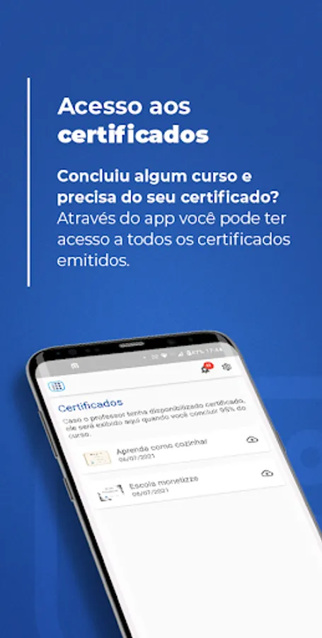 Now, you will be able to study in a much more comfortable way, anywhere and at any time of day, due to the convenience of being able to access your course through a smartphone application.