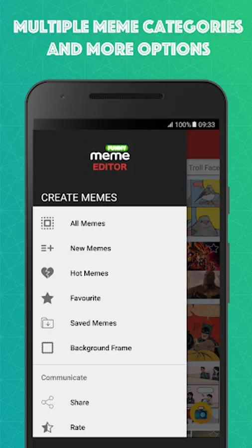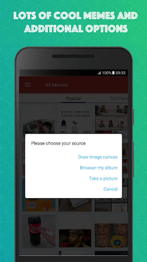 - Support custom meme, makes it possible to use any picture from your devicex to create one new