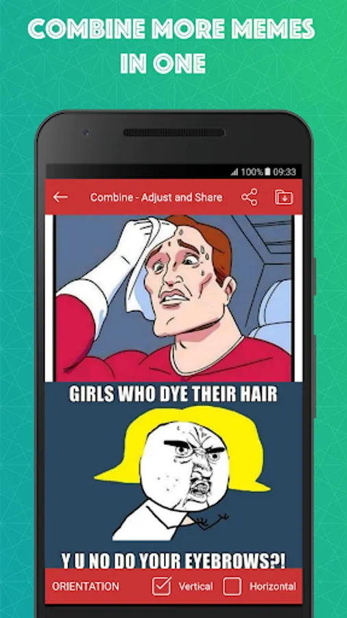 - Combine multiple saved memes into one panel