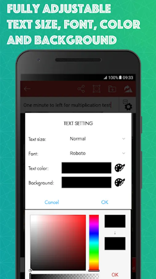 - Easy to adjust text color, font and text size