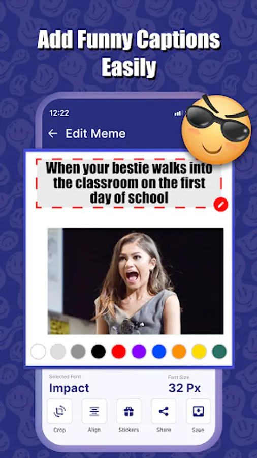 4. Drag and drop to change the text size and color in the Memes by tapping on the color palette.