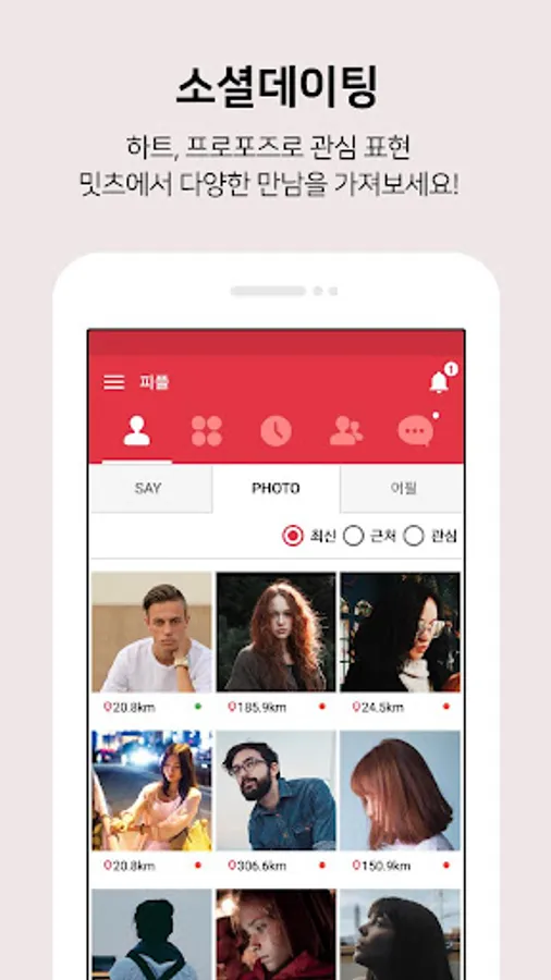 2. 피플 목록에는 위치기반을 이용한 나와의 거리가 표시됩니다. 소개팅이 부담스럽다면, 내 주변 이성만남에 도전해보세요!