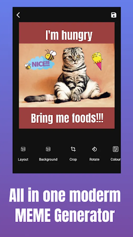 With a vast library of templates covering popular modern meme layout formats, you can choose from a variety of options or create your own from scratch. Customize your memes with ease by adding custom text, adjusting font style, and controlling text placement. Our app also offers an extensive collection of stickers, emojis, and images to enhance your memes and add even more humor.