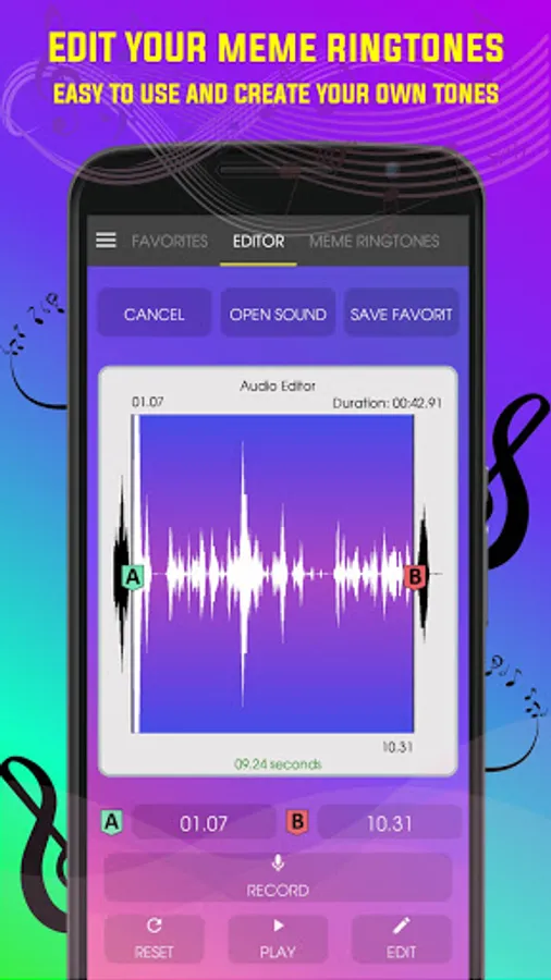 The best tones for notifications and free ringtones of free songs in English, anime tones, strange sounds, funny tones, random sounds and all those that you are able to get with its simple and effective editor of sound memes.