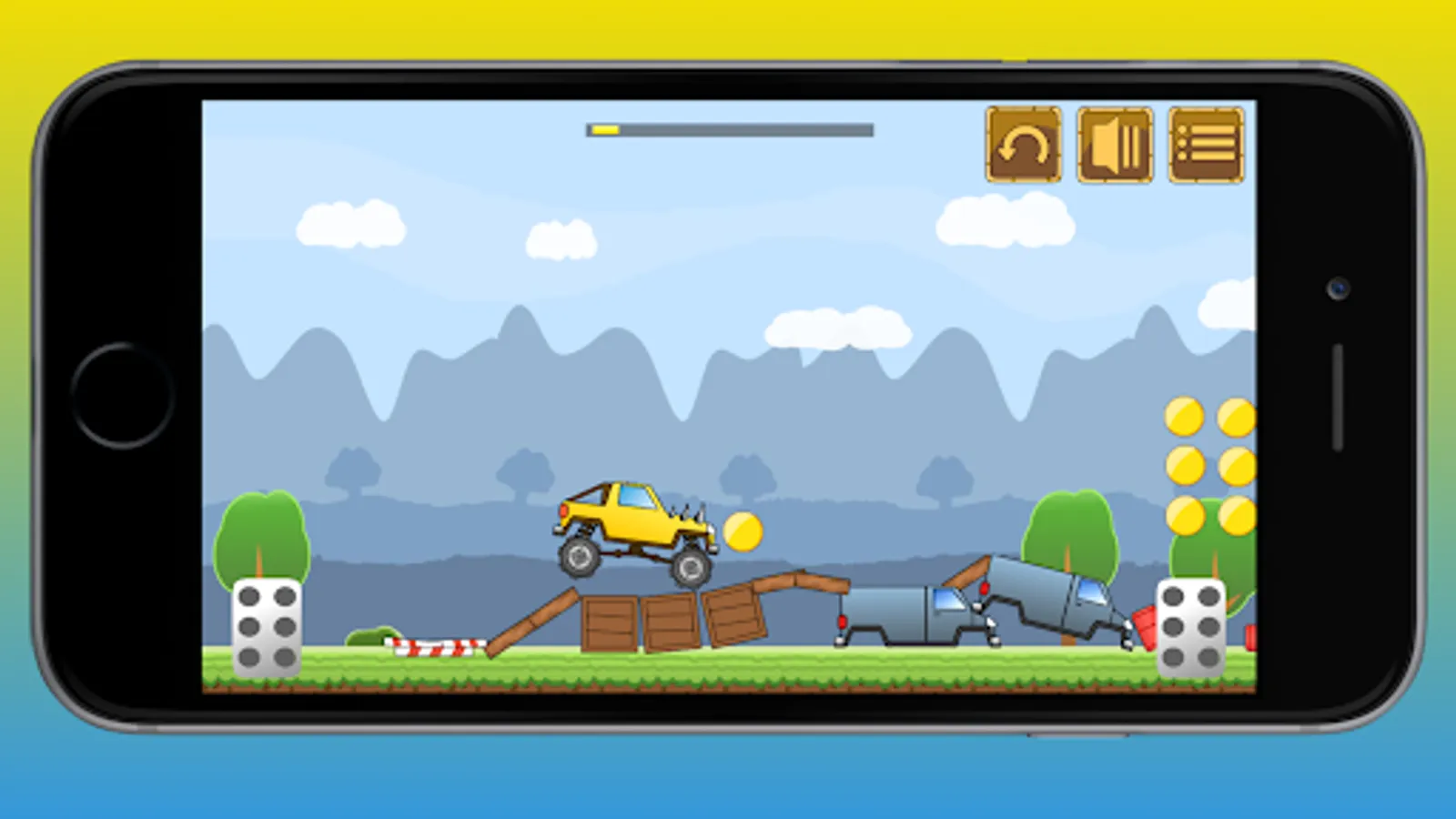 In this game you have to drive your monster truck over the obstacles and incoming objects so you can make points and collect coins so later on you can unlock different vehicles