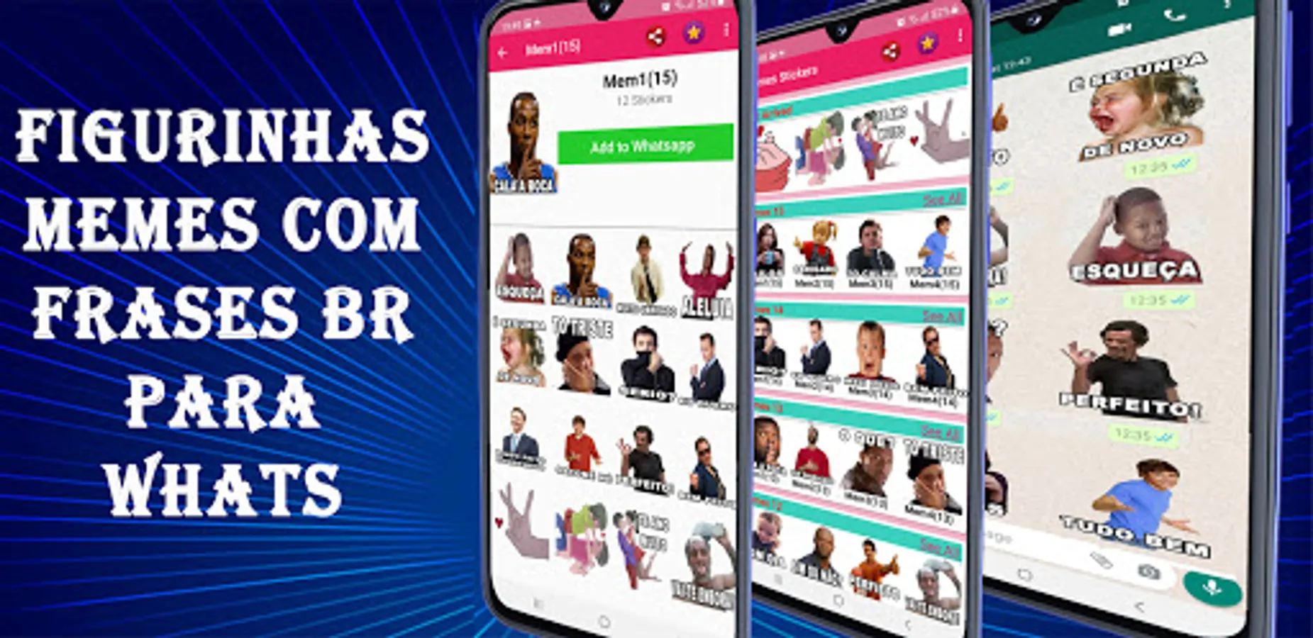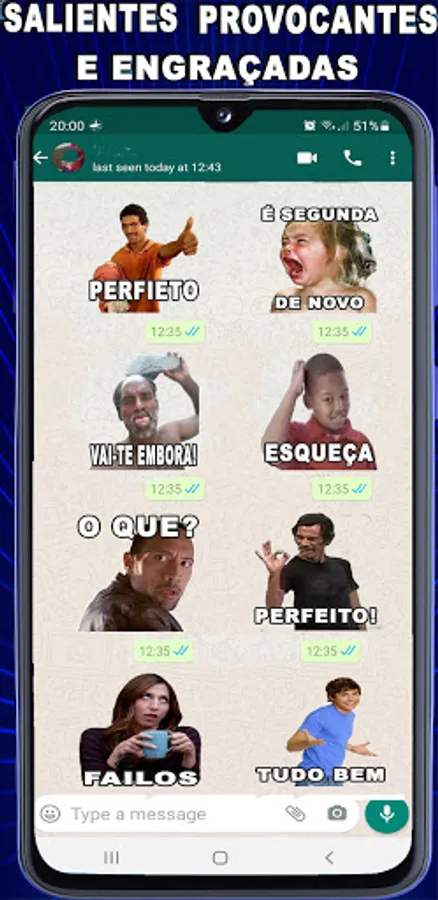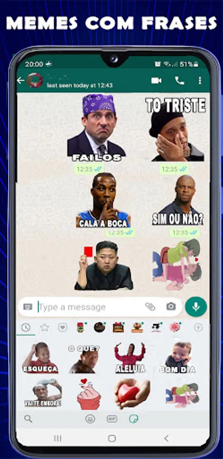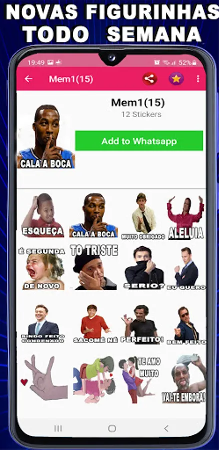 Sharing and Using Brazilian Memes with Stickers phrases on WhatsApp are now available! Send your favorite Memes to your friends.