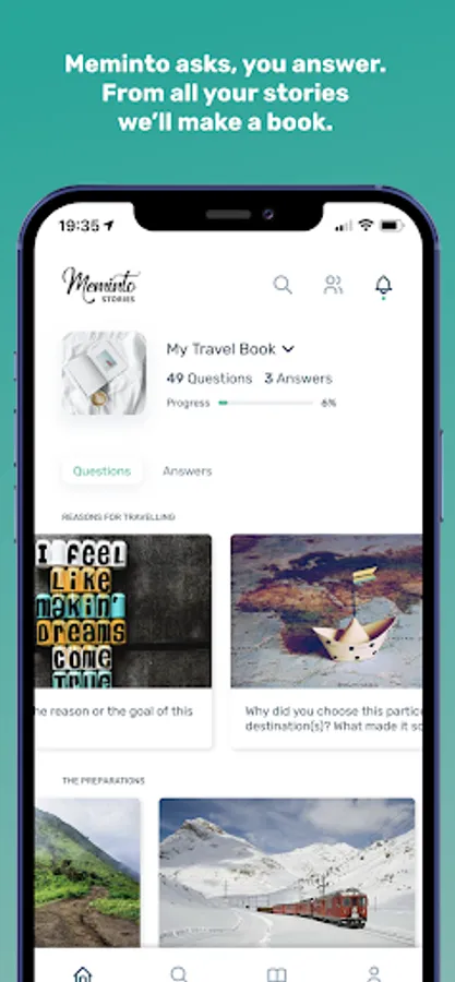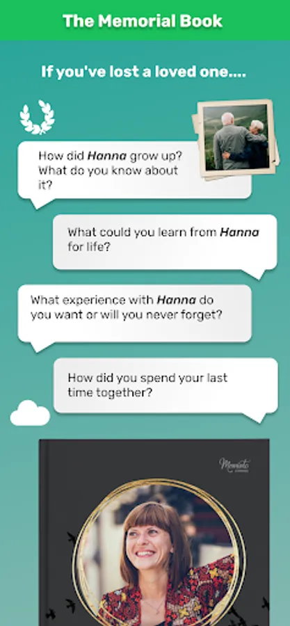 With Meminto, you get creative at the touch of a button as we ask you questions about your whole life. Whether you're already retired and want to write an entire biography or just want to start with your kids growing up. You can also record your relationship together with your partner in a book - from getting to know each other to your wedding day. Or should it be about your last big trip? With Meminto it's all possible - even post mortem. Because with us you can also create very special mementos of deceased friends or family members.
